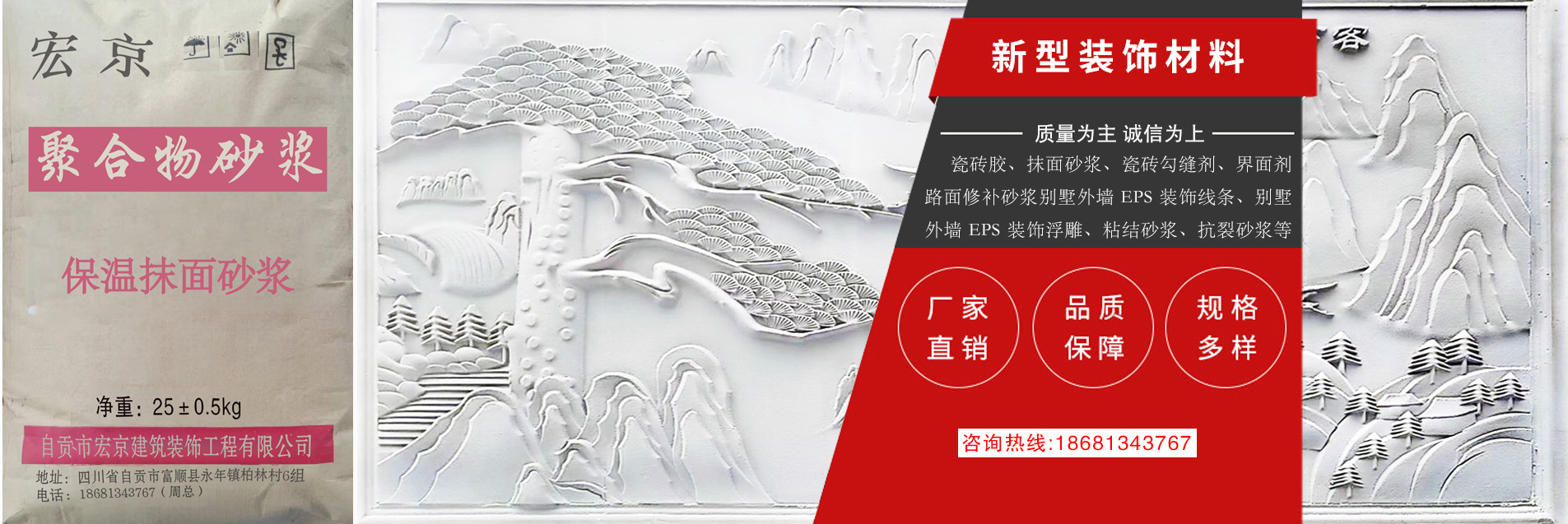 自貢市宏京建筑裝飾工程有限公司,成立于 2018 年,廠房位于位于四川省自貢市富順縣永年鎮(zhèn)柏林村 6 組柏林村小。本公司集保溫材料聚合物改性水泥基砂漿材料研發(fā)、生產(chǎn)、銷售于一體的干粉砂漿材料公司。 公司基于低碳、環(huán)保、綠色、節(jié)能的經(jīng)營(yíng)理念,生產(chǎn)推廣高效、節(jié)能、環(huán)保的新型保溫材料等產(chǎn)品。本公司 產(chǎn)品具有質(zhì)量?jī)?yōu)良、良好技術(shù)、精湛工藝、成本低等優(yōu)勢(shì)。公司成立以來(lái),一直視產(chǎn)品質(zhì)量為企業(yè)的生命, 堅(jiān)持“質(zhì)量為先,顧客至上”的服務(wù)宗旨,贏得了客戶的信賴,并建立了完善的售前售后服務(wù)體系,歡迎各 界來(lái)